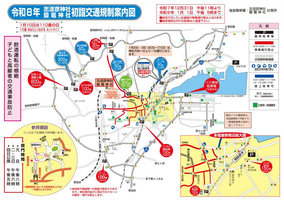 2026年志波彦神社・鹽竈神社初詣交通規制案内図2025.12.23